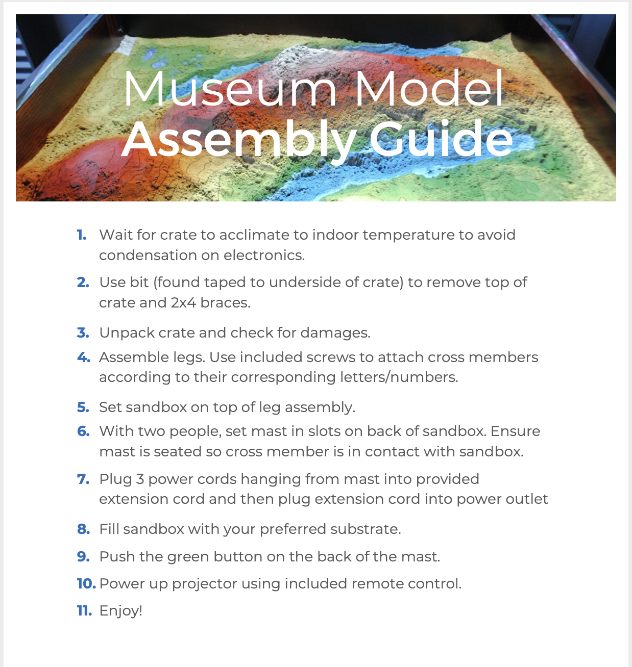 To assemble your new TopoBox Museum Model AR Sandbox, click here.
